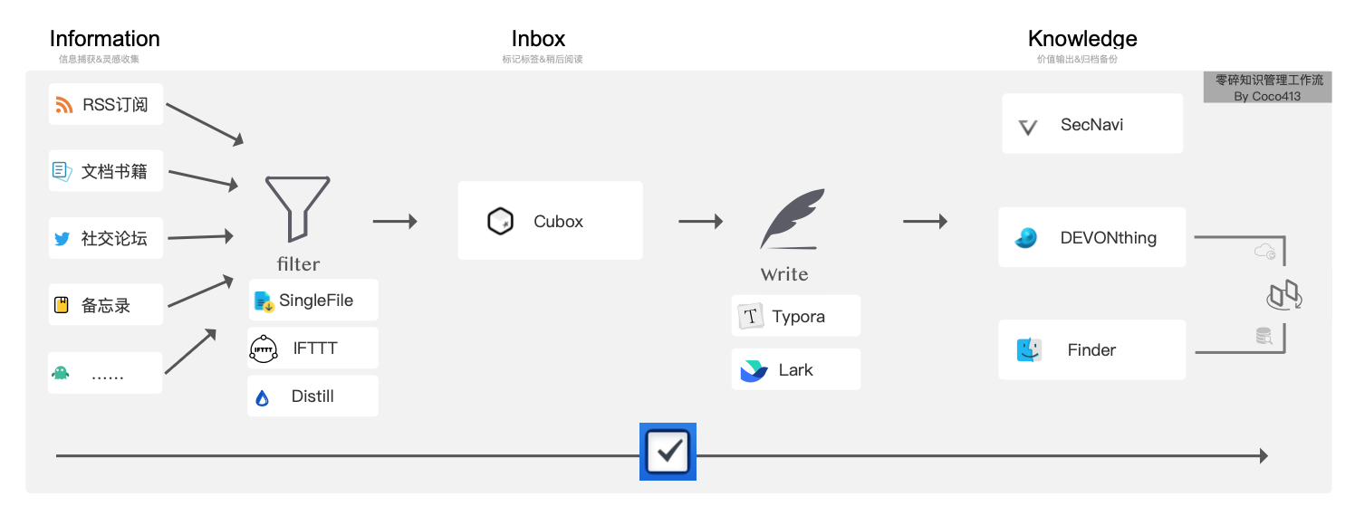 适合的工作流、良好的心态,能够帮助我们更从容的面对,每天扑面而来的信息流。除此之外,还应当不断提升独立思考、信息检索的能力,反哺工作流的输入与输出,进而去完善知识体系,让自己对事物的认知理解能更趋势于准确且全面。