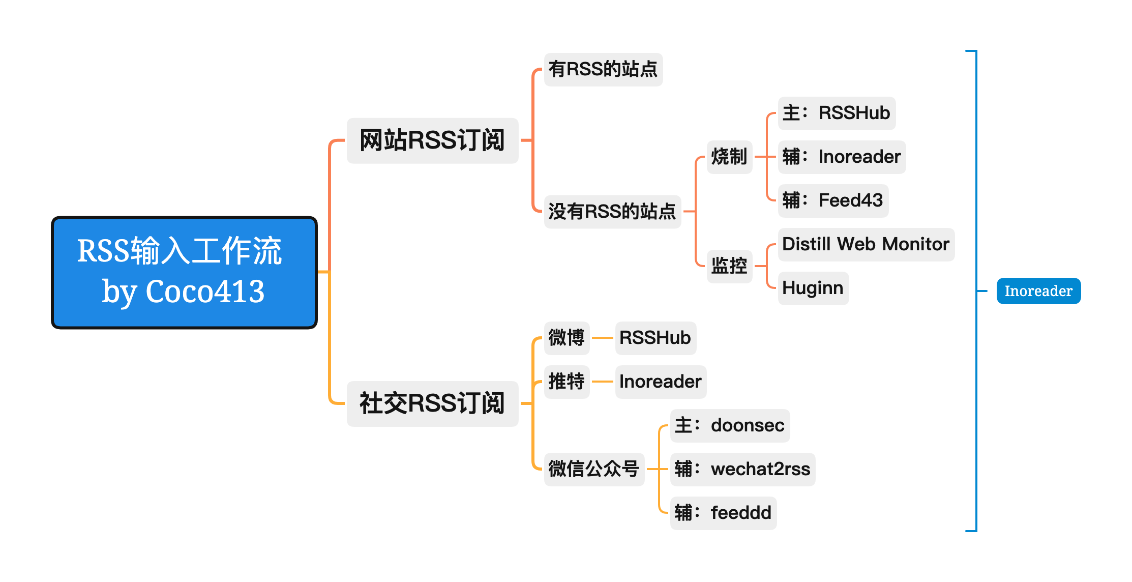 之前会有因为担心“单节点故障”漏掉了某些信息内容,所以在不同信息渠道上交叉重复订阅相同的信息源,导致阅读时候产生不少重复的内容。但其实这样意义并不大,更多只是增重了重复过滤的精力,并且有了这种“冗余机制”,在浏览的时候也会不自觉产生出一定惰性和依赖性,阅读也不够有耐心。