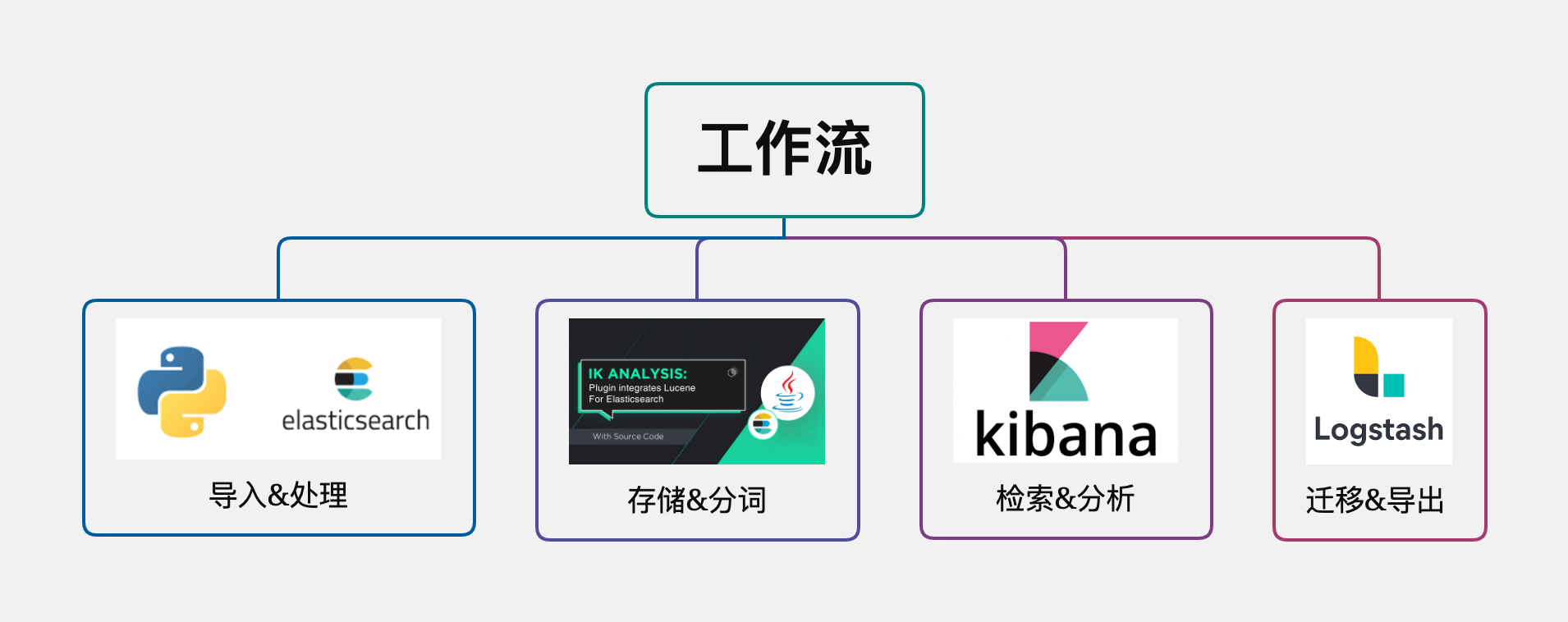 最近分析一批恶意样本数据,考虑到数据量以及开箱即用的图表分析,所以决定把数据放在ES上,用Kibana来分析。因为是自己在用,所以只要能快速跑起来,撑的住小几T数据的秒级查询、分析即可。综合速度、便捷性等方面,工作流大致如下:写streaming_bulk,存es、分词ik_max_word、检索kibana、迁移elasticdump/logstash。这个过程没啥高深技术卷入其中,更多只是从众多功能项中,筛选出满足需求,适合单机快速运转的小方案,记上一笔,方便日后用到节省时间。